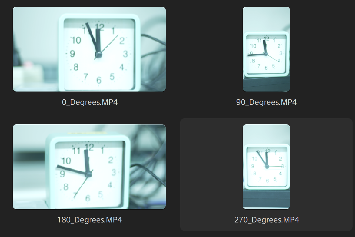 Select Auto to use the clip-rotation metadata setting if available, or select 0, 90, 180, or 270 to specify the desired clip rotation.